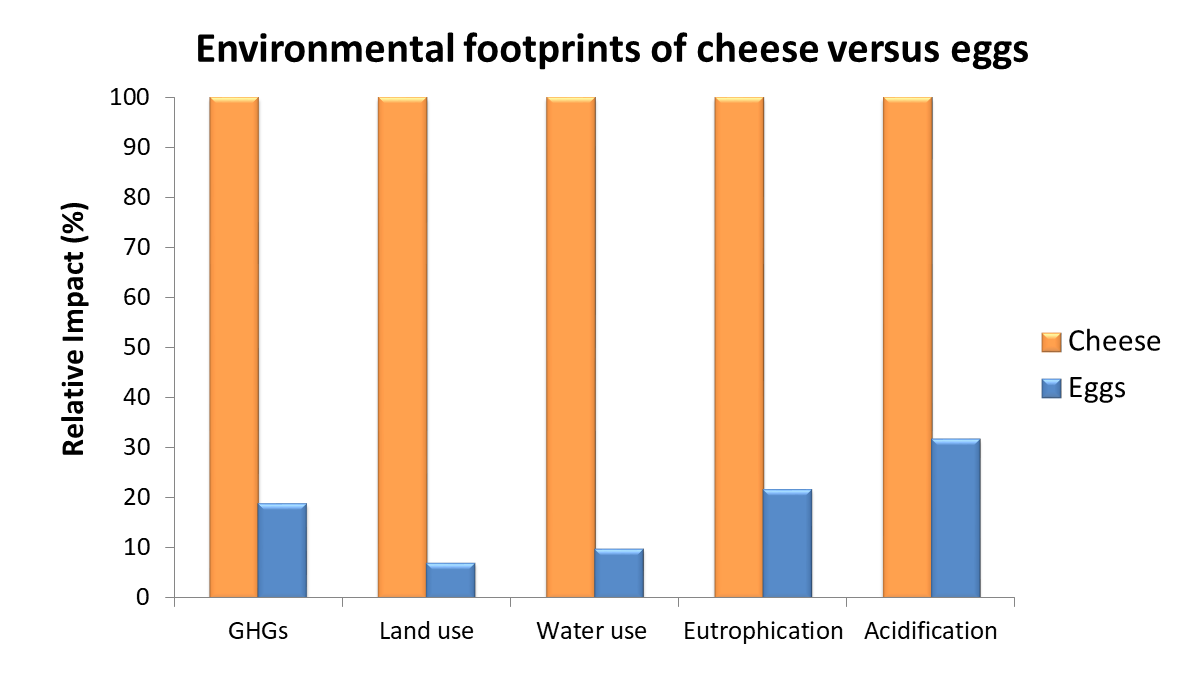 Summary of environmental footprints: cheese versus eggs