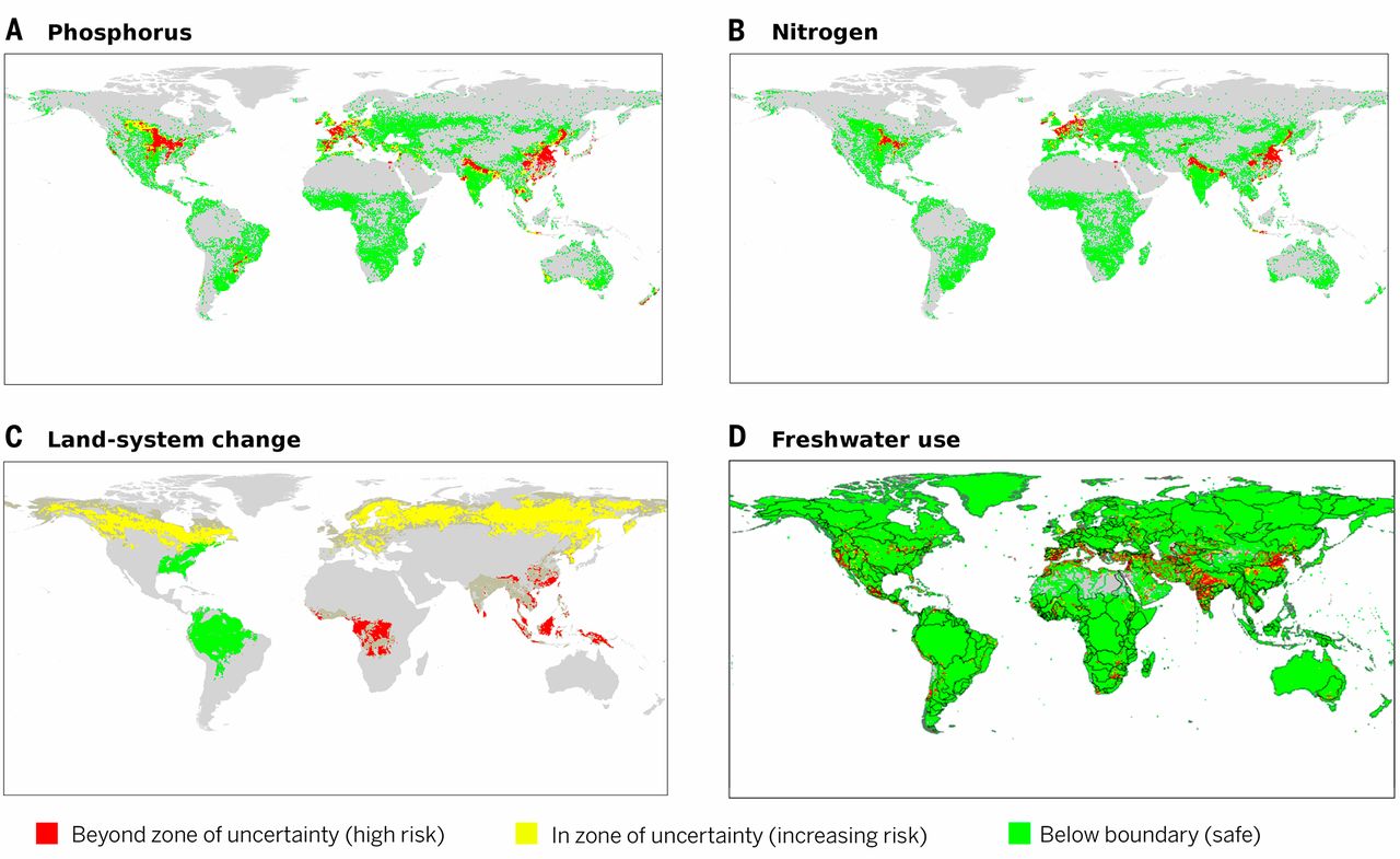 The planetary boundaries framework draws upon Earth system science. It identifies nine processes that are critical for maintaining the stability and resilience of Earth system as a whole. All are presently heavily perturbed by human activities